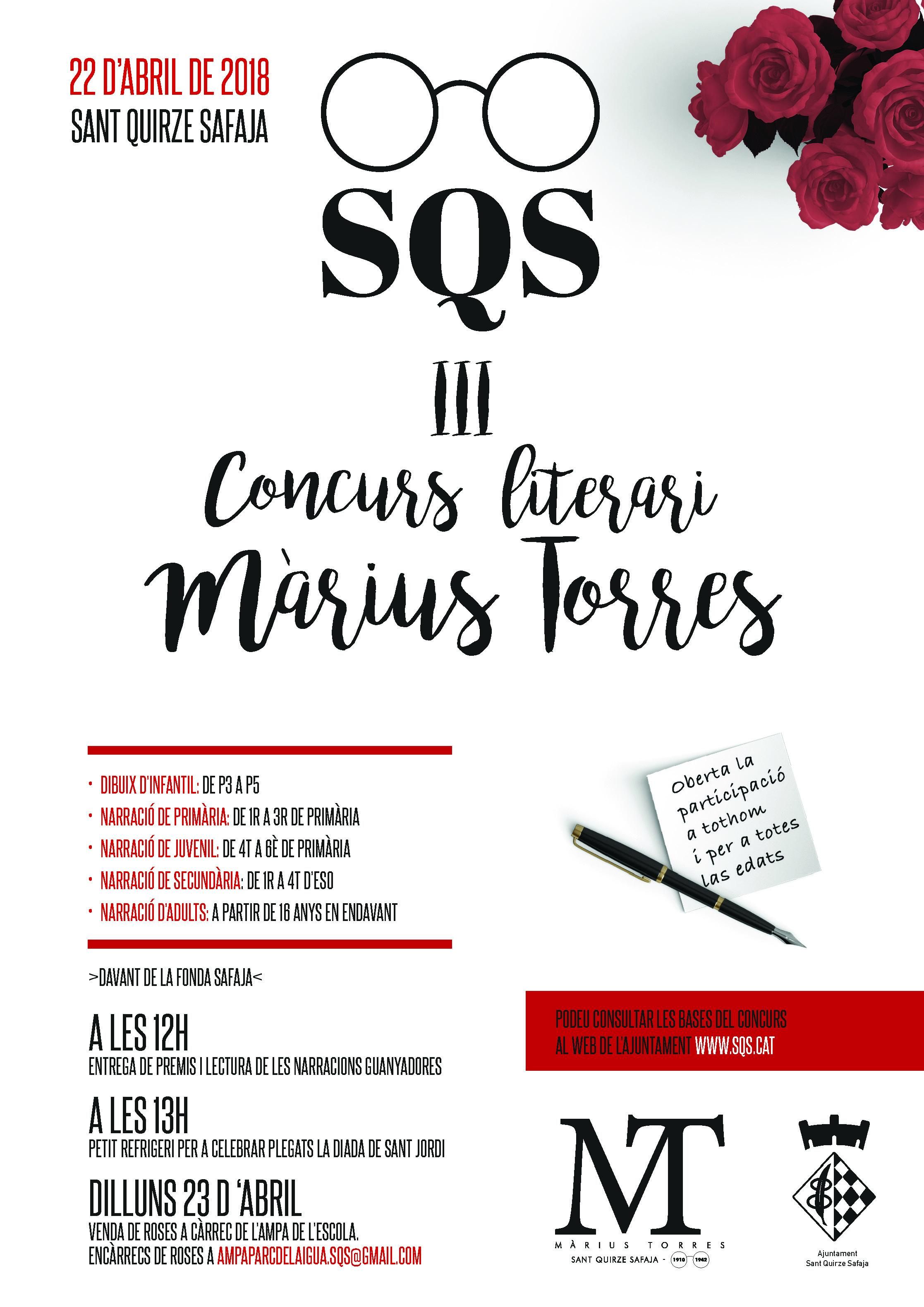 Per tercer any consecutiu tornem a obrir convocatòria al Concurs literari Màrius Torres de Sant Quirze Safaja. Tot seguit detallem les bases del concurs: