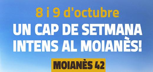 El proper cap de setmana 8 i 9 d’octubre el Moianès us proposa dos dies d’ofertes atractives i activitats diverses per donar a conèixer la comarca 42. Precisament ha estat la xifra de la comarca (i també la situació geogràfica que situa el Moianès a uns 42 kilòmetres de Barcelona) les que han batejat la campanya com a MOIANÈS 42.