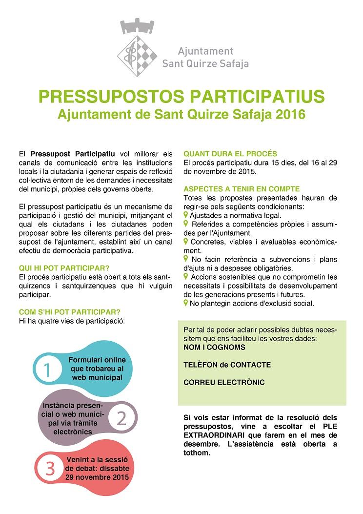 El procés participatiu està obert a tots els sant-quirzencs i santquirzenques que hi vulguin participar.