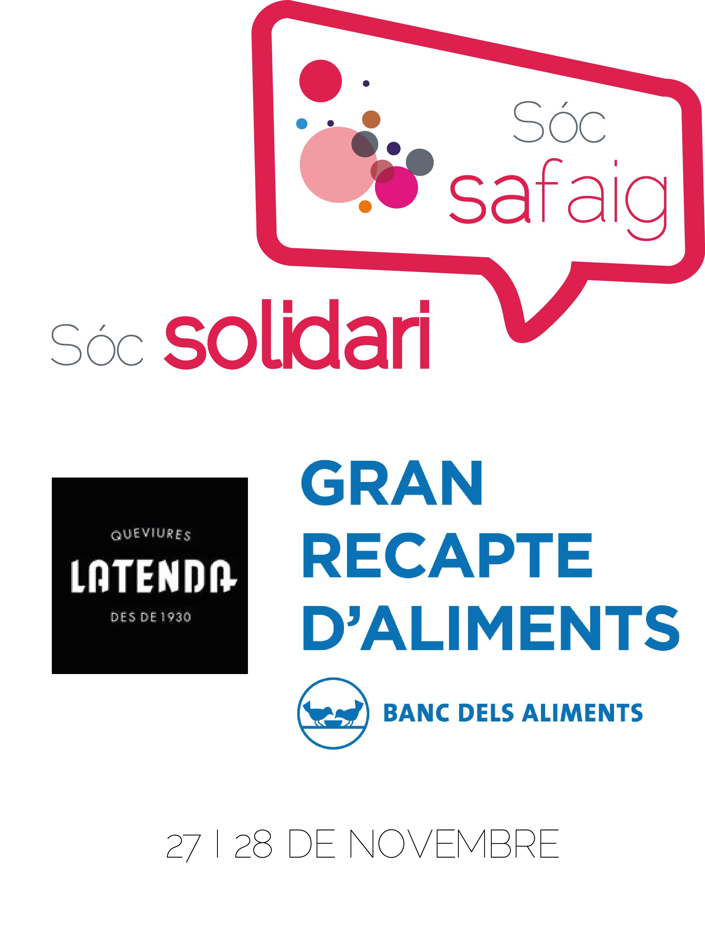 Aquest any, LATENDA serà el punt de recollida d'aliments en el gran recapte d'enguany que tindrà lloc el 27 i 28 de novembre. Tots hi podem posar el nostre granet de sorra. Som-hi!