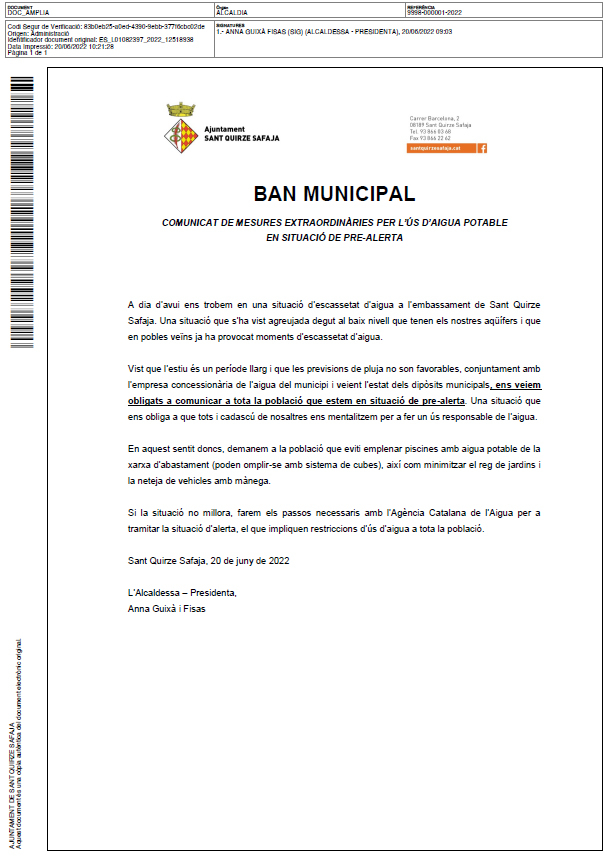 - 5.- PROPOSTA D’ACORD DE MODIFICACIÓ DE L’ORDENANÇA FISCAL NÚMERO 30 REGULADORA DE LA PRESTACIÓ PATRIMONIAL DE CARÀCTER NO TRIBUTARI DEL SERVEI MUNICIPAL DE SUBMINISTRAMENT D’AIGUA POTABLE I DEMÈS SERVEIS COMPLEMENTARIS DE LA POBLACIÓ DE SANT QUIRZE SAFAJA (X2021000355)