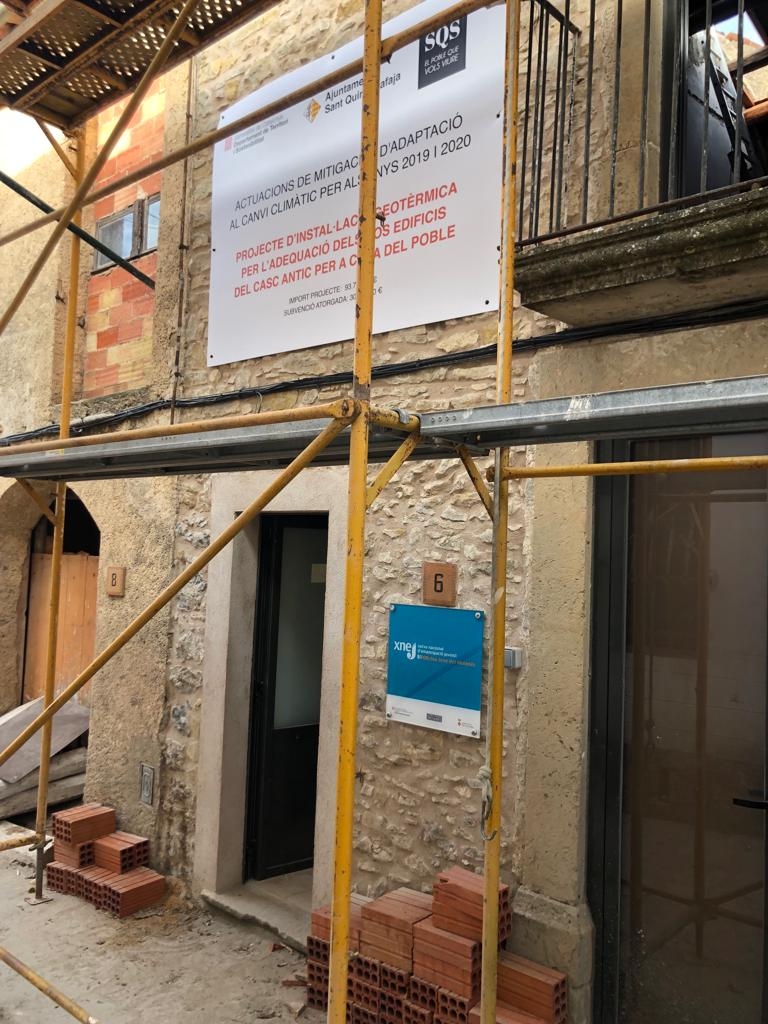 A l’equipament de la casa del poble s’ha instal·lat un cartell on es fa publicitat les actuacions que s’estan executant dins de la convocatòria d’actuacions de mitigació i d’adaptació al canvi climàtic per als anys 2019 i 2020, corresponent al projecte d’instal·lació de geotèrmia per a l’adequació dels dos edificis del casc antic per a Casa del Poble.